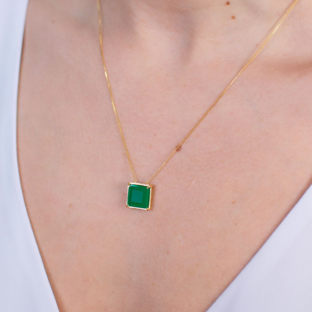 O colar jade verde quadrado é a peça ideal para compor varios mix de colares, ele acrescenta um romantismo sofisticado ao look, e encrementa o visual de uma maneira muito elegante.
