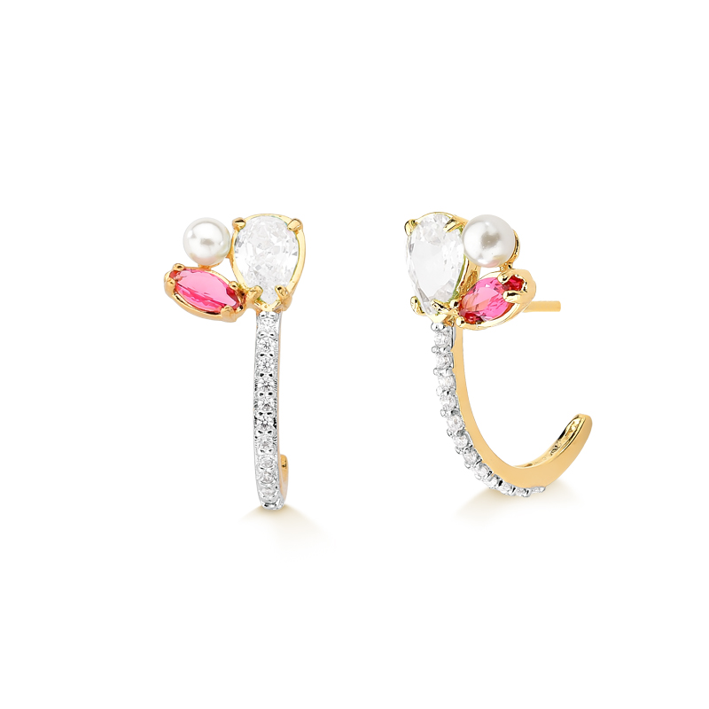 BRINCO JOTA ZIRCONIA COM CRISTAL E PÉROLA