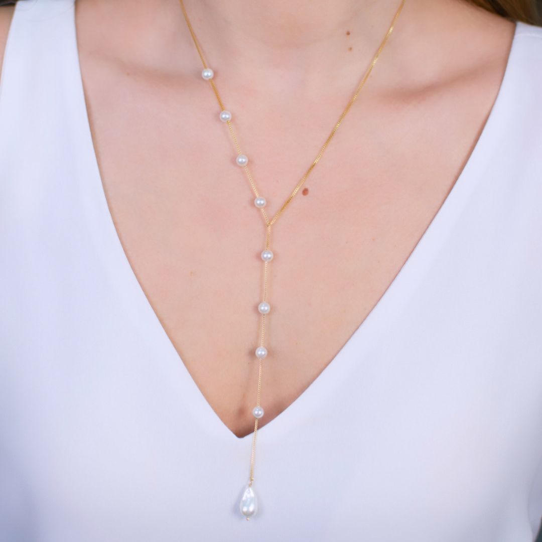Colar gravatinha em perola shell, peça banhada a ouro 18k, em luxo em forma de colar, replica de altas joalherias combinando perfeitamente sofisticação e modernidade.