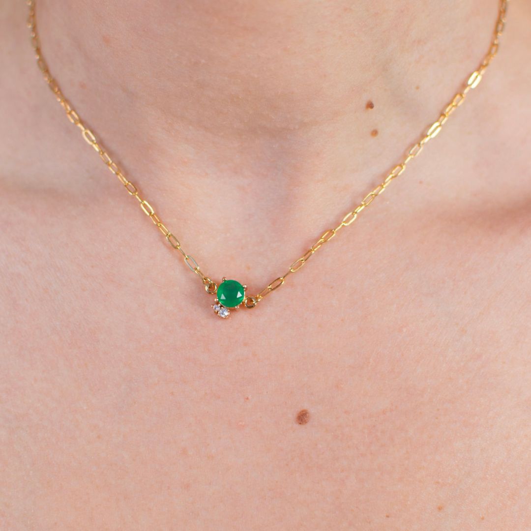 O colar verde jade com carre é a peça ideal para compor varios mix de colares, ele acrescenta um romantismo sofisticado ao look, e encrementa o visual de uma maneira muito elegante.